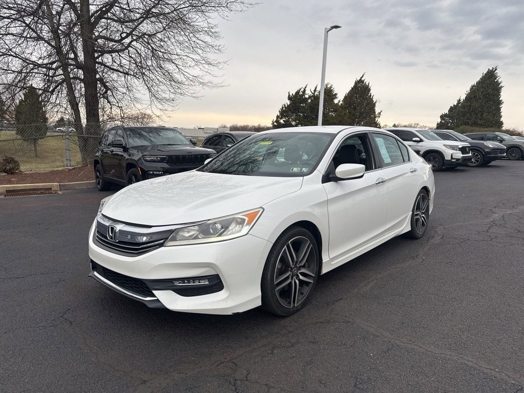 A MUST SEE!!, ONE OWNER!!, 2016 Honda Accord Sport MODEL!!, NEW CAR TRADE!!, LOCAL TRADE!!, AUTOMATIC TRANSMISSION!!, BACK-UP CAMERA!!, BLUETOOTH!!, AM-FM RADIO!!, POWER DRIVER SEAT!!, ALLOY WHEELS!!, BOUGHT AND FULLY SERVICED HERE!!, COMPLETELY SERVICED!!, CLEAN INSIDE AND OUT!!, HondaTrue Used!!!, MARKET BASE PRICED TO SELL QUICK!!, HURRY IN-WILL NOT LAST AT THIS PRICE!!, BUY WITH COMPLETE CONFIDENCE HERE AT PIAZZA Honda OF POTTSTOWN!!, CALL TO CHECK AVAILABILITY 610-495-7076, COMPLIMENTARY OIL CHANGE CHANGE WITH PURCHASE!!, FREE LIFETIME PA STATE INSPECTION!!, VISIT OUR WEBSITE 24 HOURS A DAY www.piazzahondapottstown.com. Certified. CARFAX One-Owner. Odometer is 31455 miles below market average! 26/35 City/Highway MPG Clean CARFAX. White Orchid Pearl 2016 Honda Accord Sport w/Honda Sensing FWD CVT 2.4L I4 DOHC i-VTEC 16V